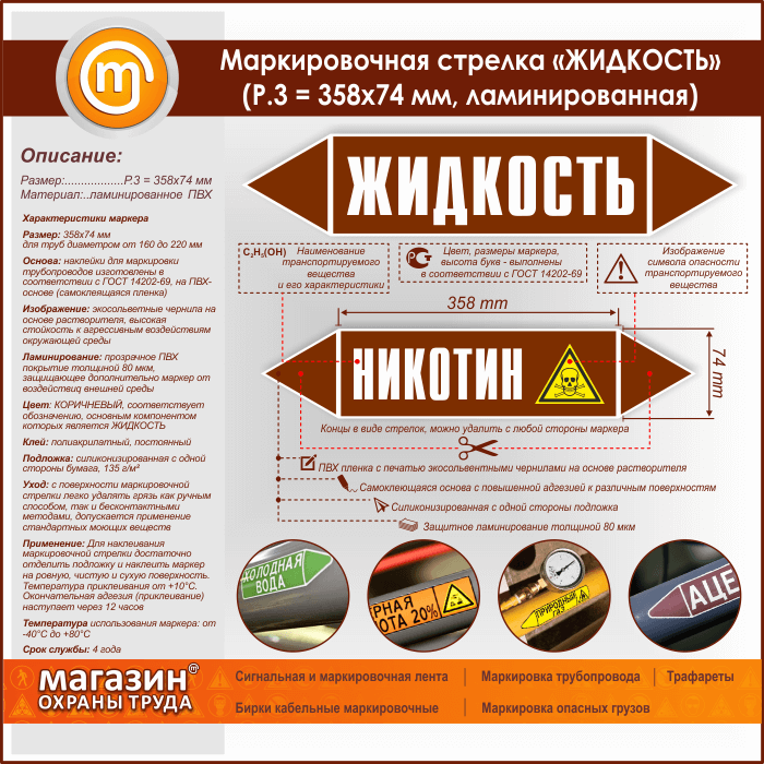Маркировочная стрелка «ЖИДКОСТЬ» (P.3 = 358х74 мм, самоклеящаяся плёнка с ламинированием) в Нижнекамске купить