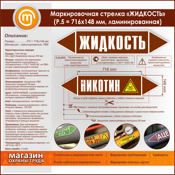 Маркировочная стрелка «ЖИДКОСТЬ» (P.5 = 716х148 мм, самоклеящаяся плёнка с ламинированием) в Нижнекамске купить