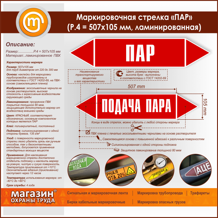 Маркировочная стрелка «ПАР» (P.4 = 507х105 мм, самоклеящаяся плёнка с ламинированием) в Нижнекамске купить