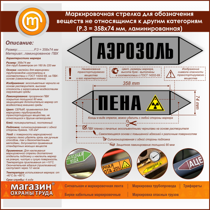 Маркировочная стрелка «ПРОЧИЕ ВЕЩЕСТВА» (P.3 = 358х74 мм, самоклеящаяся плёнка с ламинированием) в Нижнекамске купить