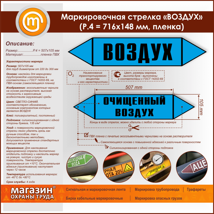 Маркировочная стрелка «ВОЗДУХ» (P.4 = 507х105 мм, самоклеящаяся плёнка) в Нижнекамске купить