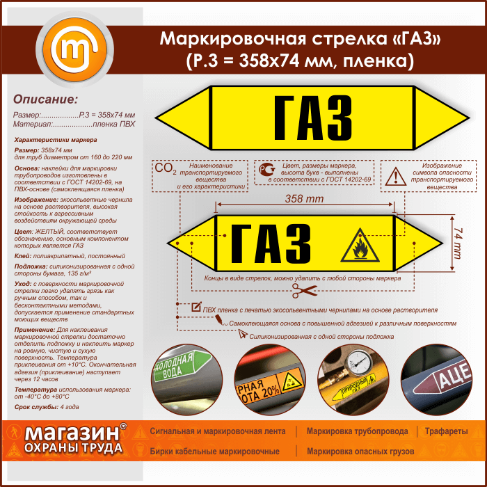 Маркировочная стрелка «ГАЗ» (P.3 = 358х74 мм, самоклеящаяся плёнка) в Нижнекамске купить