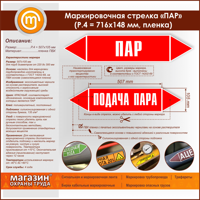 Маркировочная стрелка «ПАР» (P.4 = 507х105 мм, самоклеящаяся плёнка) в Нижнекамске купить