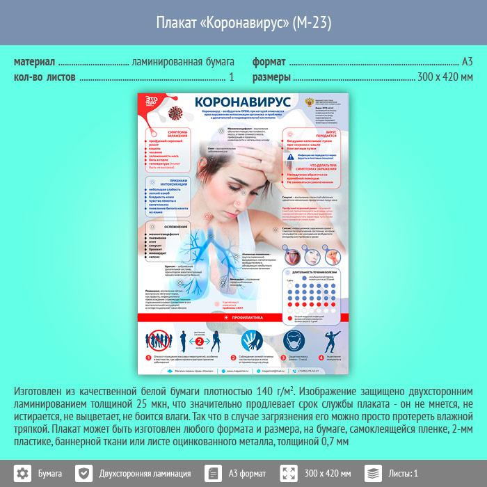 Плакат «Коронавирус» (М-23, ламинированная бумага, А3, 1 лист) в Нижнекамске купить