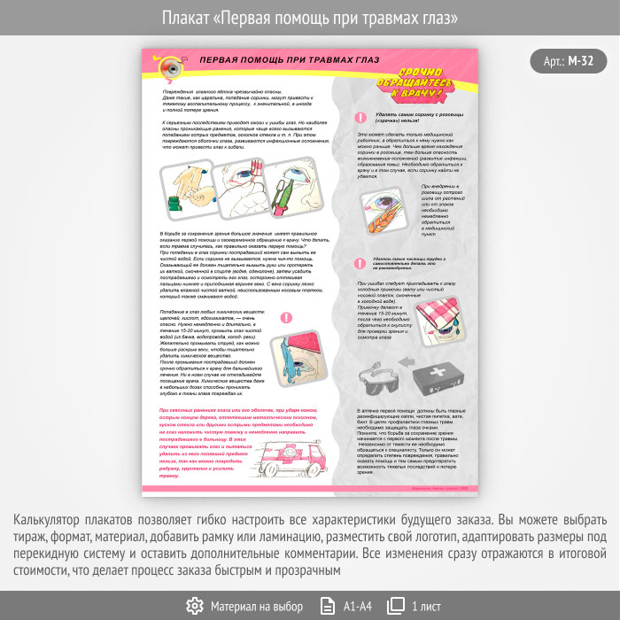 Плакат «Первая помощь при травмах глаз» (М-32, 1 лист) в Нижнекамске купить