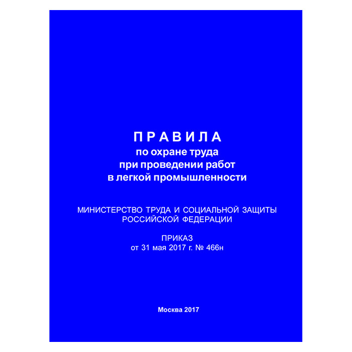 Правила по охране труда при проведении работ в легкой промышленности (Приказ Минтруда РФ от 31.05.2017 № 466н) (ЛАП-26) в Нижнекамске купить