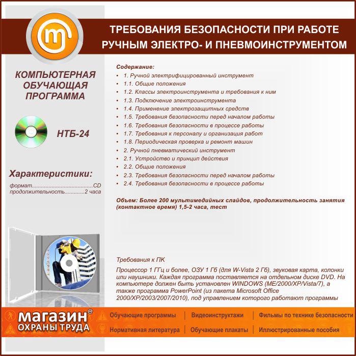 «Требования безопасности при работе ручным электро- и пневмоинструментом», обучающая программа в Нижнекамске купить