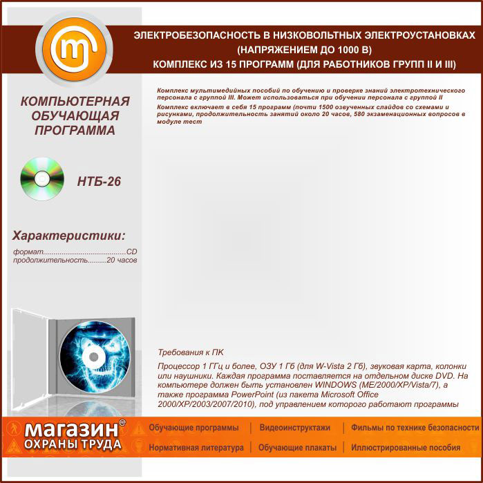 «Электробезопасность в низковольтных электроустановках (напряжением до 1000 В)», комплекс из 15 обучающих программ (для работников групп II и III) в Нижнекамске купить
