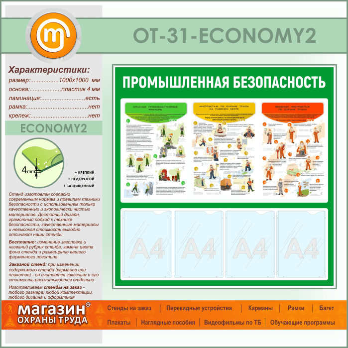Стенд «Промышленная безопасность» с 4 карманами (OT-31-ECONOMY2) в Нижнекамске купить