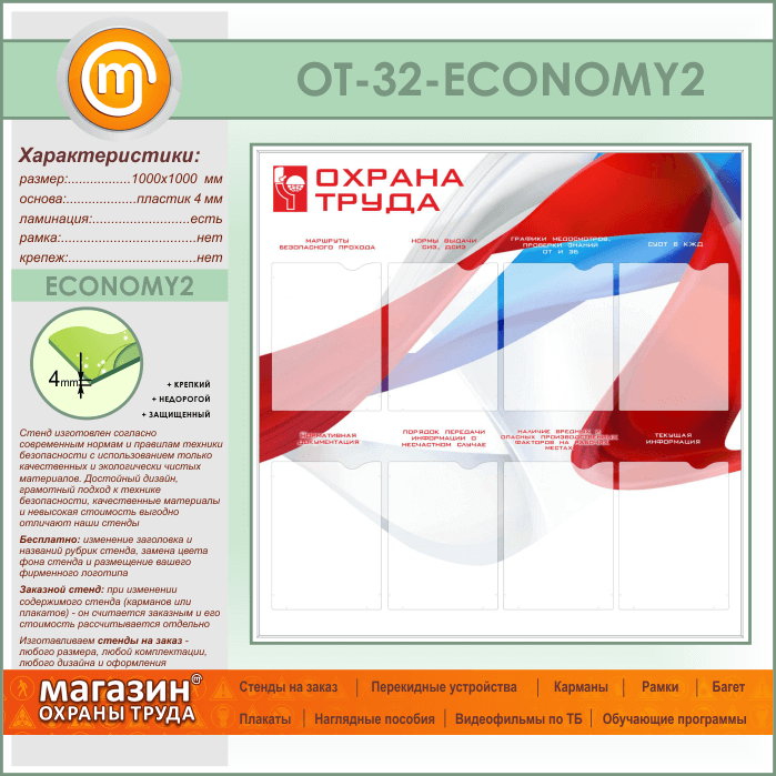 Стенд «Охрана труда» с 8 карманами (OT-32-ECONOMY2) в Нижнекамске купить