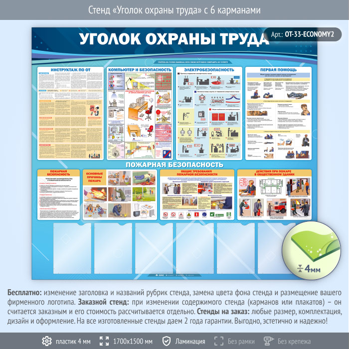 Стенд «Уголок охраны труда» с 6 карманами (OT-33-ECONOMY2) в Нижнекамске купить