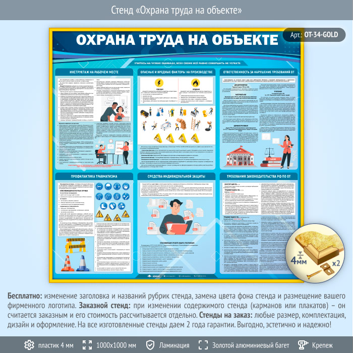 Стенд «Охрана труда на объекте» (OT-34-GOLD) в Нижнекамске купить