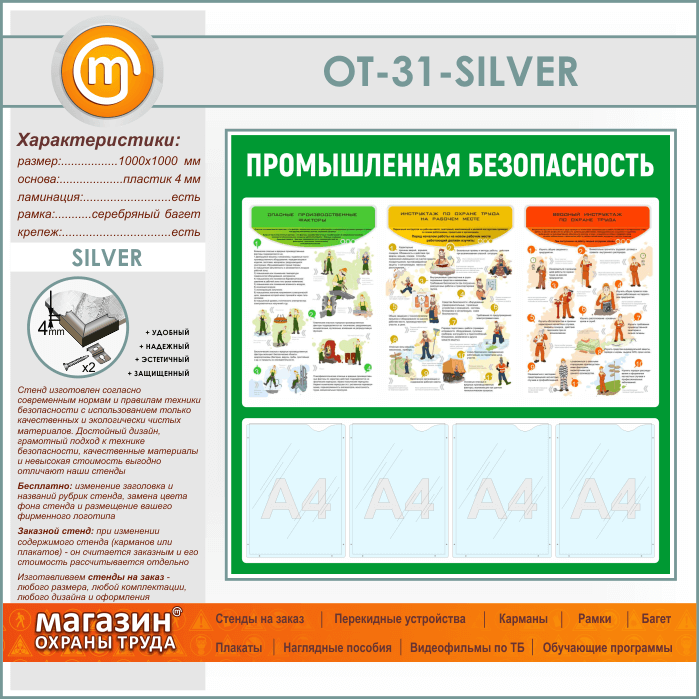 Стенд «Промышленная безопасность» с 4 карманами (OT-31-SILVER) в Нижнекамске купить