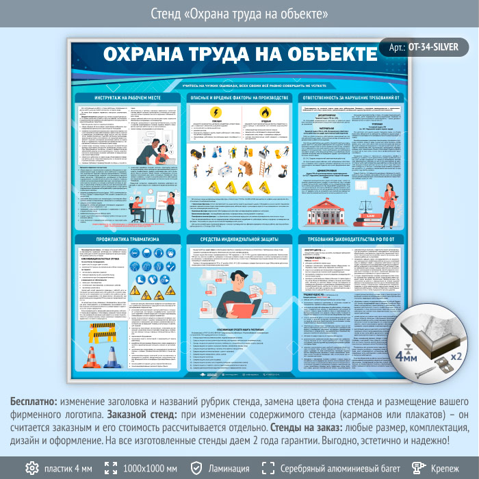 Стенд «Охрана труда на объекте» (OT-34-SILVER) в Нижнекамске купить