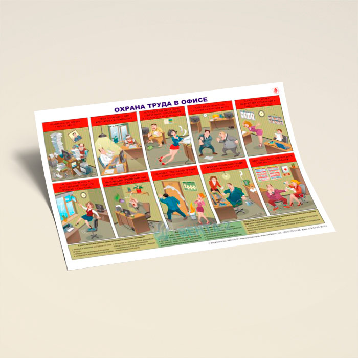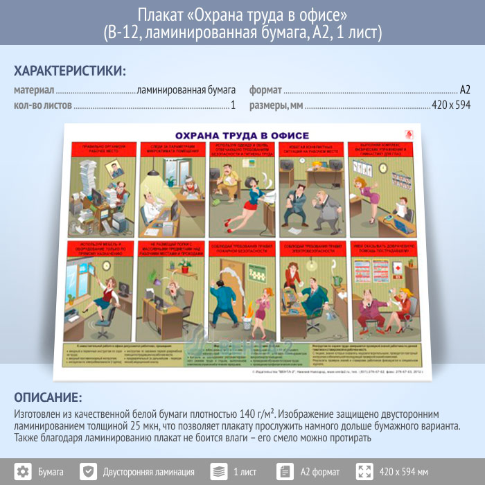 Плакат «Охрана труда в офисе» (В-12, ламинированная бумага, А2, 1 лист) в Нижнекамске купить