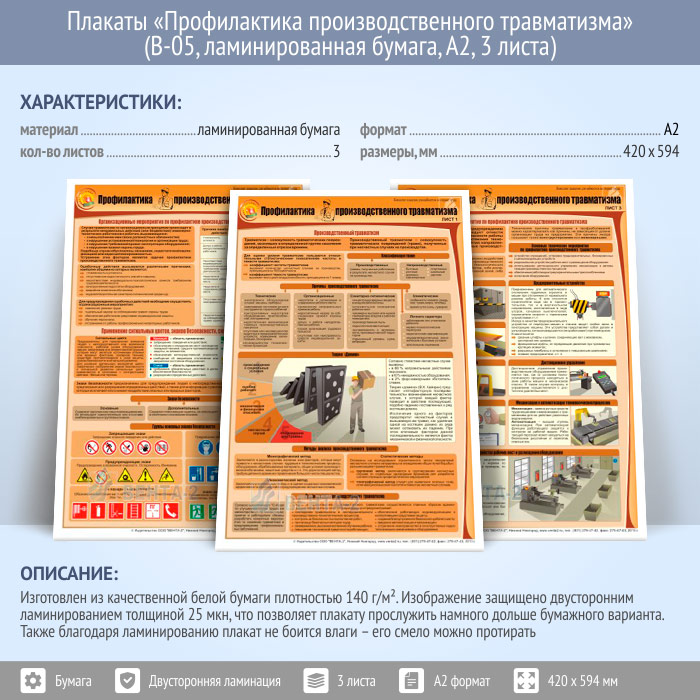 Плакаты «Профилактика производственного травматизма» (В-05, ламинированная бумага, А2, 3 листа) в Нижнекамске купить