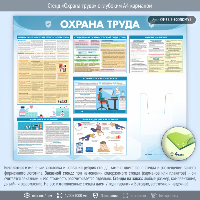 Стенд «Охрана труда» с глубоким А4 карманом (OT-35.2-ECONOMY2) в Нижнекамске купить