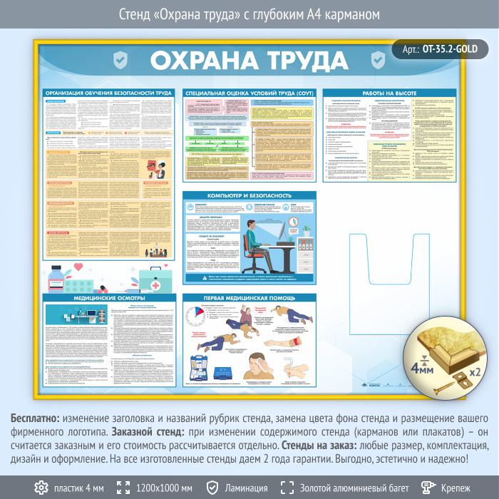 Стенд «Охрана труда» с глубоким А4 карманом (OT-35.2-GOLD) в Нижнекамске купить