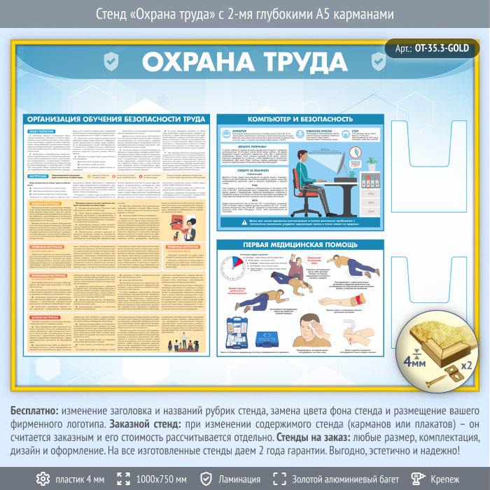 Стенд «Охрана труда» с 2-мя глубокими А5 карманами (OT-35.3-GOLD) в Нижнекамске купить