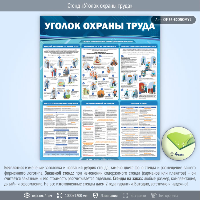 Стенд «Уголок охраны труда» (OT-36-ECONOMY2) в Нижнекамске купить