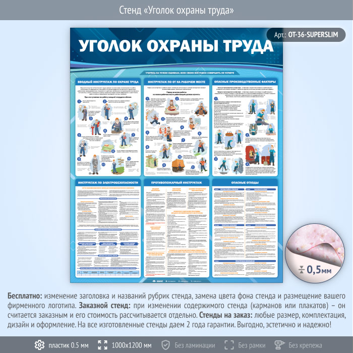 Стенд «Уголок охраны труда» (OT-36-SUPERSLIM) в Нижнекамске купить