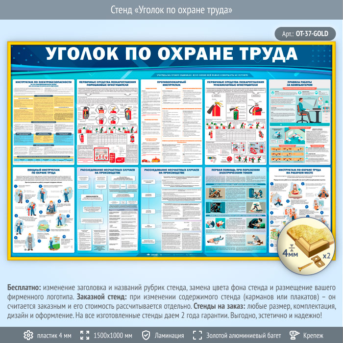 Стенд «Уголок по охране труда» (OT-37-GOLD) в Нижнекамске купить