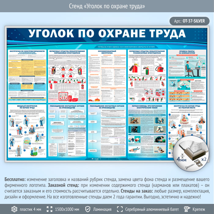 Стенд «Уголок по охране труда» (OT-37-SILVER) в Нижнекамске купить