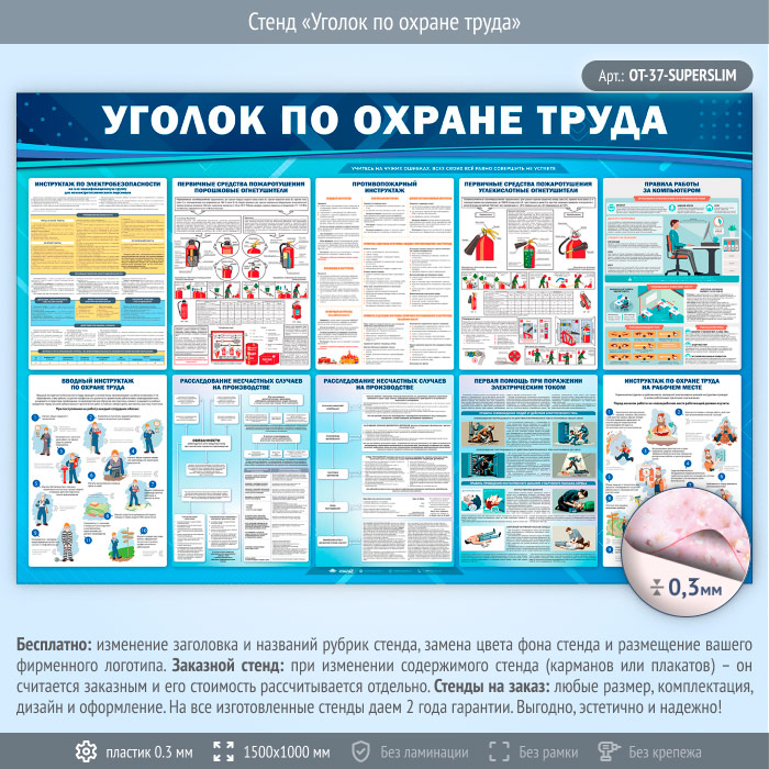 Стенд «Уголок по охране труда» (OT-37-SUPERSLIM) в Нижнекамске купить