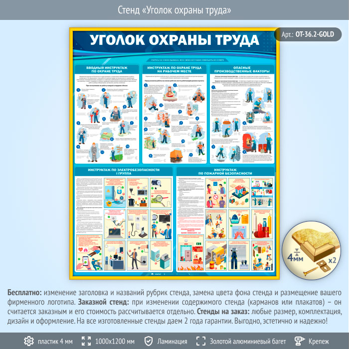 Стенд «Уголок охраны труда» (OT-36.2-GOLD) в Нижнекамске купить