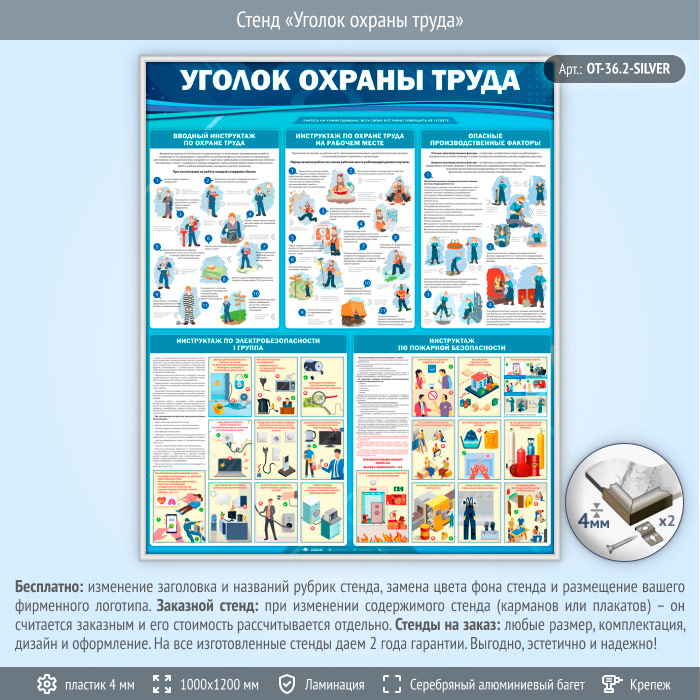 Стенд «Уголок охраны труда» (OT-36.2-SILVER) в Нижнекамске купить