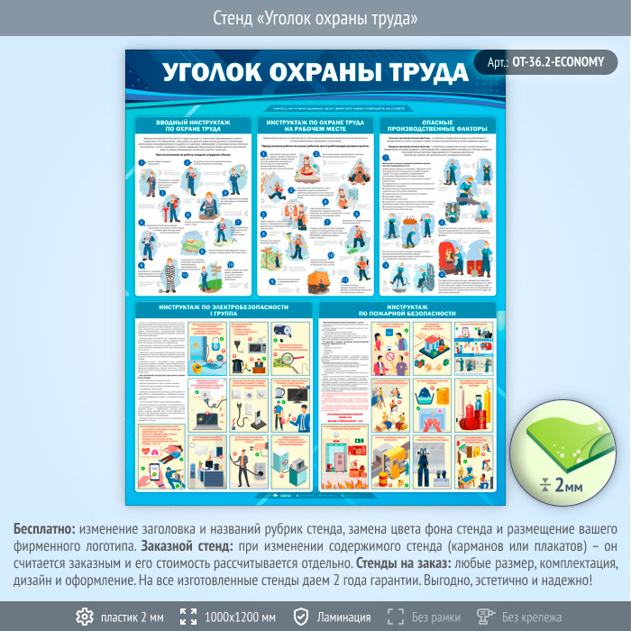 Стенд «Уголок охраны труда» (OT-36.2-ECONOMY) в Нижнекамске купить