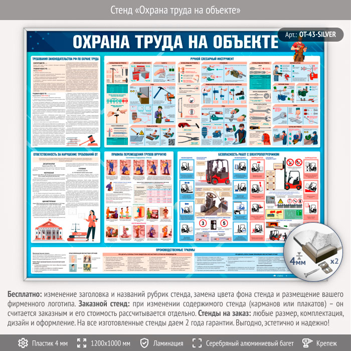 Стенд «Охрана труда на объекте» (OT-43-SILVER) в Нижнекамске купить