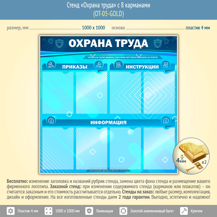 Стенд «Охрана труда» с 8 карманами (OT-05-GOLD) в Нижнекамске купить
