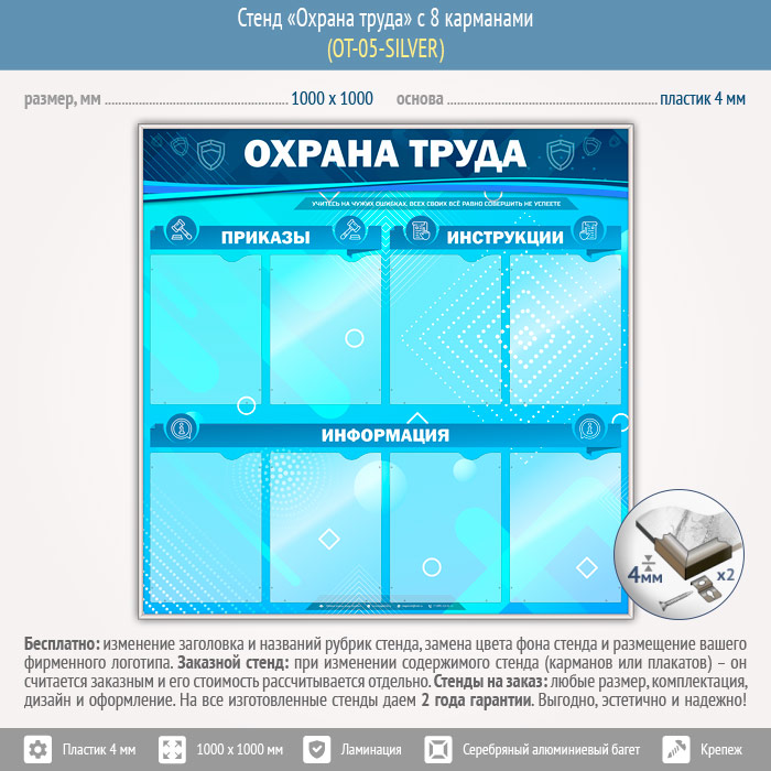 Стенд «Охрана труда» с 8 карманами (OT-05-SILVER) в Нижнекамске купить