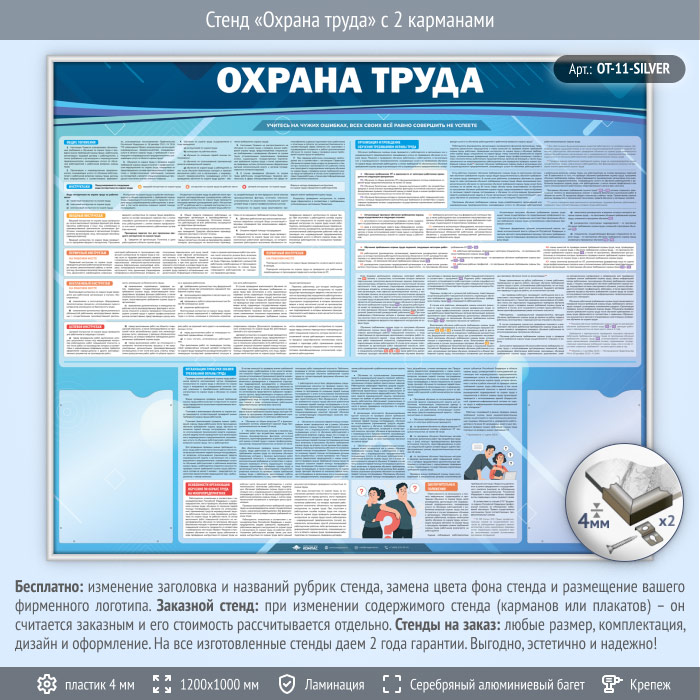 Стенд «Охрана труда» с 2 карманами (OT-11-SILVER) в Нижнекамске купить