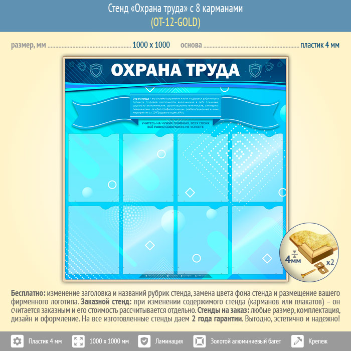 Стенд «Охрана труда» с 8 карманами (OT-12-GOLD) в Нижнекамске купить