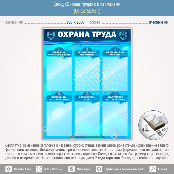 Стенд «Охрана труда» с 6 карманами (OT-16-SILVER) в Нижнекамске купить
