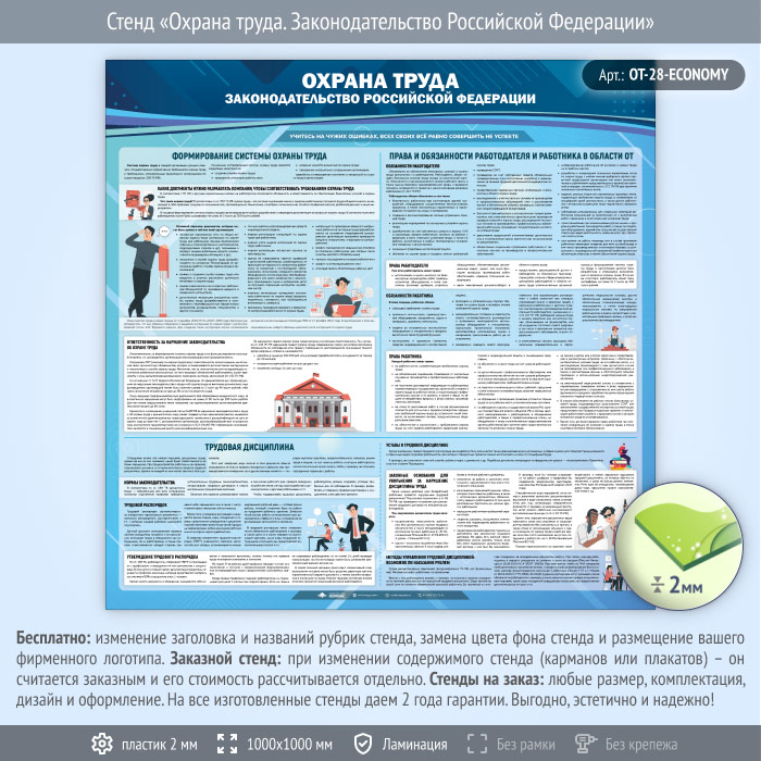 Стенд «Охрана труда. Законодательство Российской Федерации» (OT-28-ECONOMY) в Нижнекамске купить