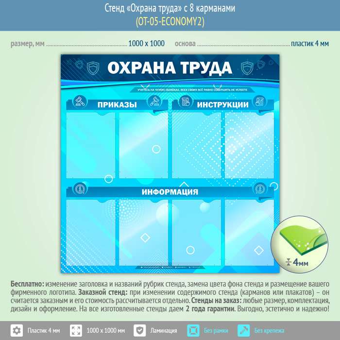 Стенд «Охрана труда» с 8 карманами (OT-05-ECONOMY2) в Нижнекамске купить