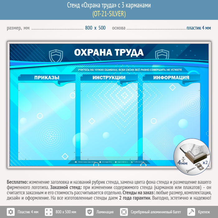 Стенд «Охрана труда» с 3 карманами (OT-21-SILVER) в Нижнекамске купить