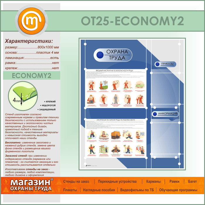 Стенд «Охрана труда» с 2 плоскими карманами (OT-25-ECONOMY2) в Нижнекамске купить