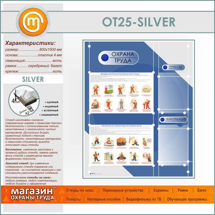 Стенд «Охрана труда» с 2 плоскими карманами (OT-25-SILVER) в Нижнекамске купить