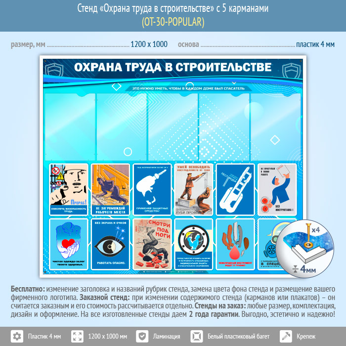 Стенд «Охрана труда в строительстве» с 5 карманами (OT-30-POPULAR) в Нижнекамске купить