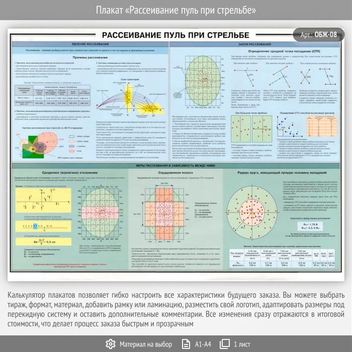 Плакат «Рассеивание пуль при стрельбе» (ОБЖ-08, 1 лист) в Нижнекамске купить