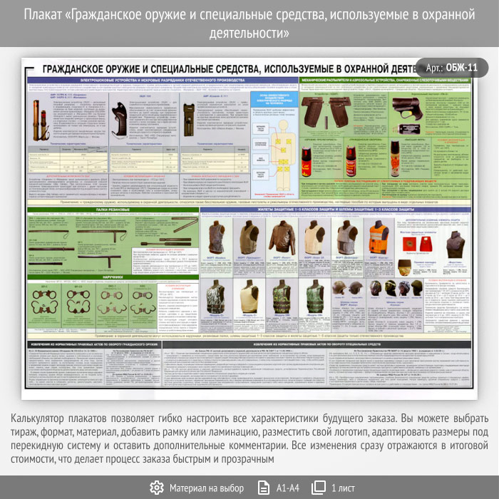 Плакат «Гражданское оружие и специальные средства, используемые в охранной деятельности» (ОБЖ-11, 1 лист) в Нижнекамске купить