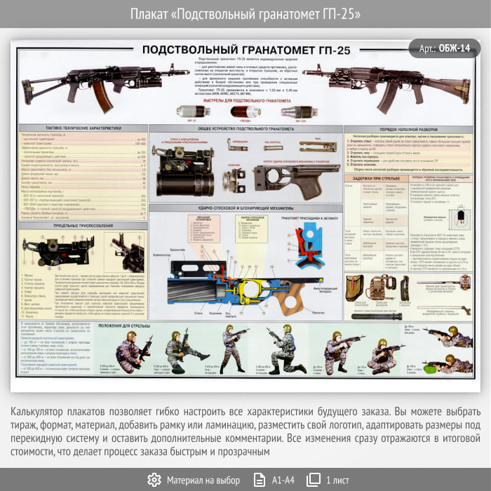 Плакат «Подствольный гранатомет ГП-25» (ОБЖ-14, 1 лист) в Нижнекамске купить