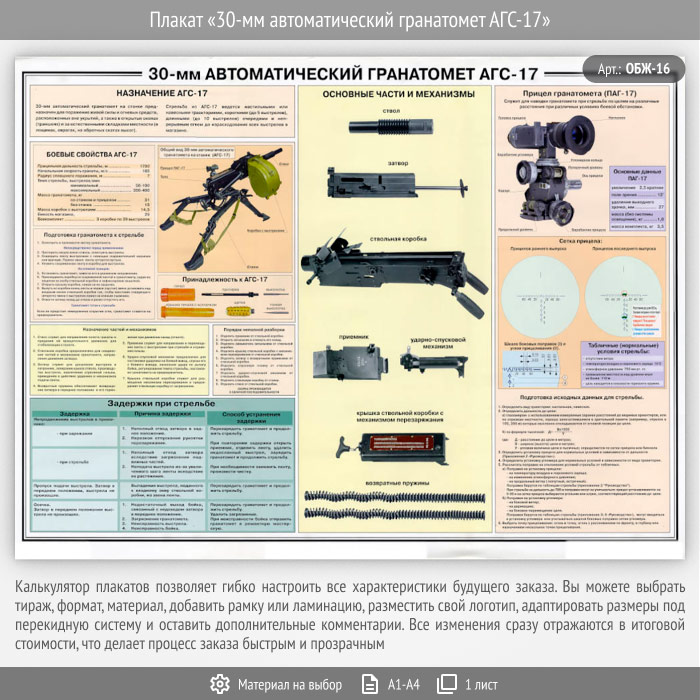 Плакат «30-мм автоматический гранатомет АГС-17» (ОБЖ-16, 1 лист) в Нижнекамске купить
