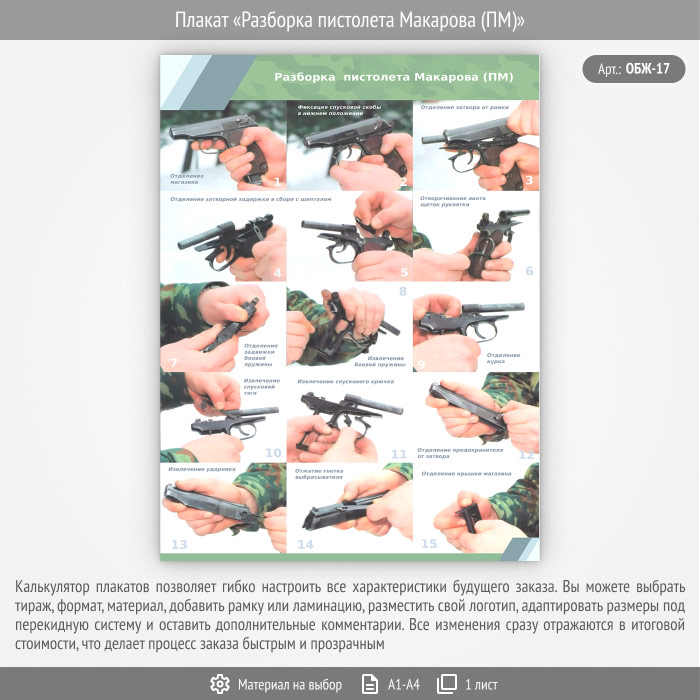 Плакат «Разборка пистолета Макарова (ПМ)» (ОБЖ-17, 1 лист) в Нижнекамске купить