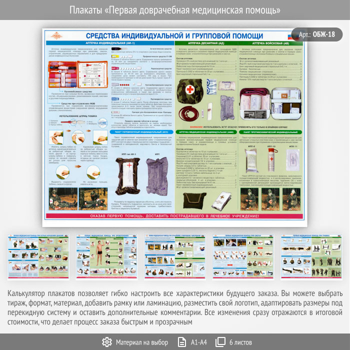 Плакаты «Первая доврачебная медицинская помощь» (ОБЖ-18, 6 листа) в Нижнекамске купить