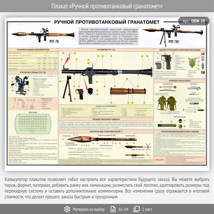 Плакат «Ручной противотанковый гранатомет» (ОБЖ-20, 1 лист) в Нижнекамске купить